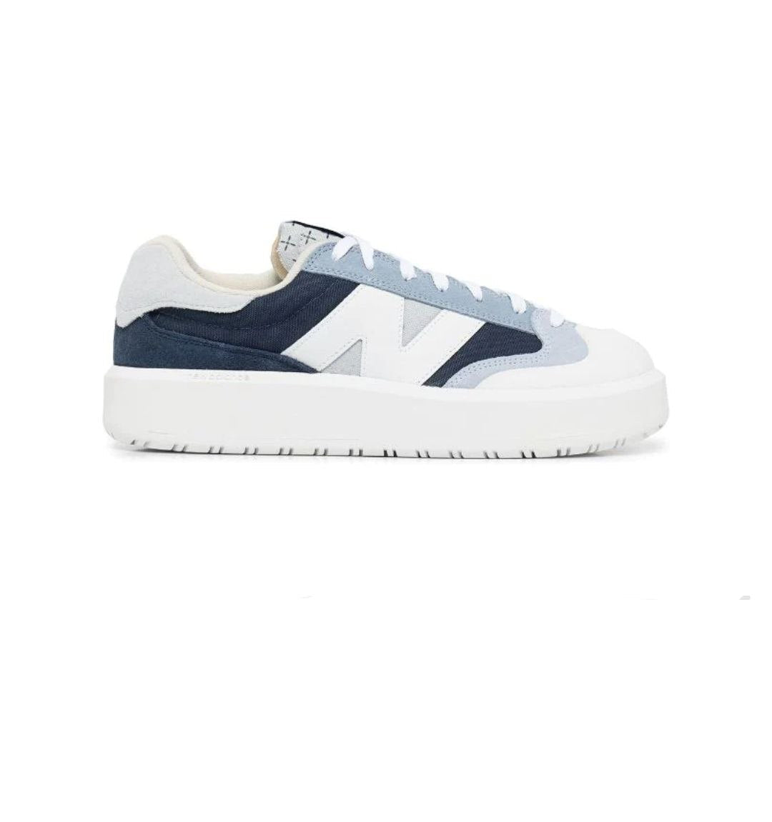 CT302 panelled low-top sneakers from NEW BALANCE featuring blue, multicolour, logo patch to the side, panelled design, round toe, front lace-up fastening, logo patch at the tongue, branded insole and chunky rubber sole.