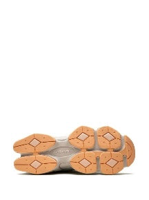 New Balance's 9060 sneaker features a futuristic design inspired by the technical aesthetic of the 2000s. Wavy lines and exaggerated proportions define their low-top silhouette, while the signature ABZORB cushioning offers comfort and stability.