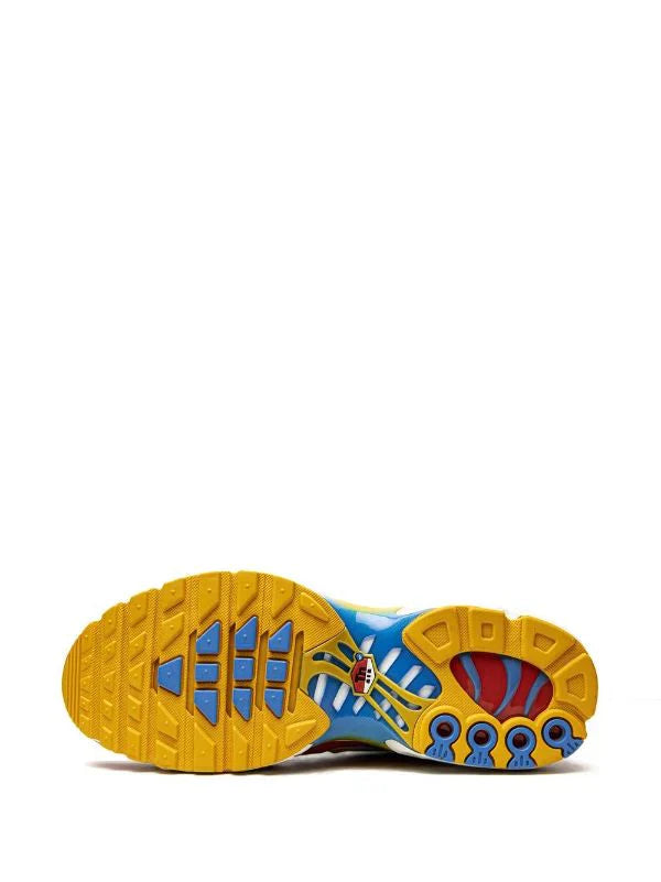 The Nike Air Max Plus SE "Running Club brings back '70s track inspiration. This sneaker has a retro look in red, blue and yellow hues and offers premium stability and cushioning thanks to its rubber sole with Max Air cushioning. A yellow-hued Swoosh logo on the sides completes the design.